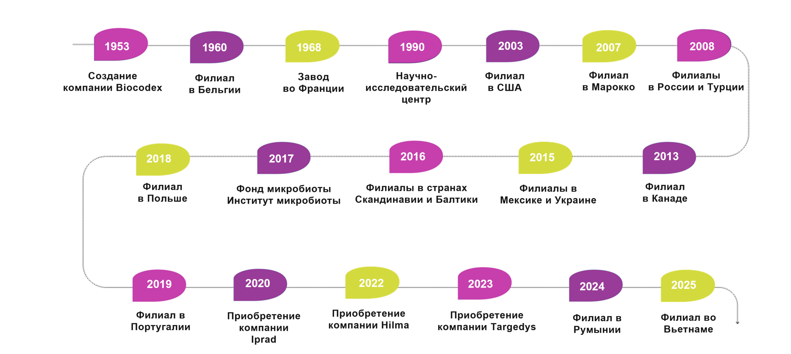 Штаб-квартира Biocodex находится во Франции, при этом за последние 10 лет компания расширила свое географическое присутствие и на сегодняшний день работает с 17 филиалами и долгосрочными партнерскими проектами в других странах. Через эту международную сеть Biocodex предлагает медицинские решения пациентам в 100 странах.